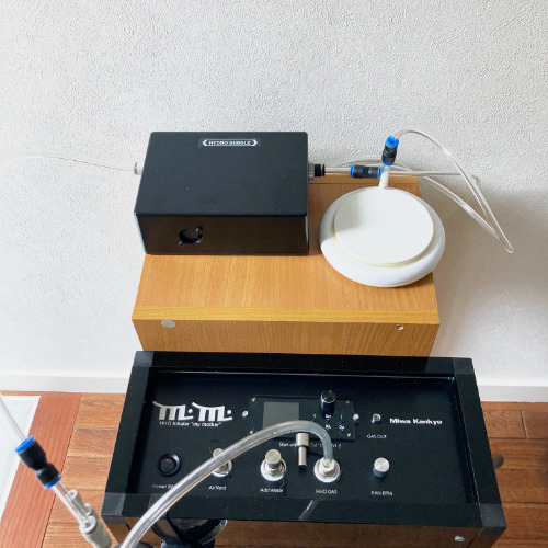 水素酸素吸入器に水素バス用ポンプ “HYDRO BUBBLE”を取り付け、浴槽用セラミックを取り付けて、浴槽に水素酸素を送り込むことで、低い酸化還元電位の高濃度水素酸素バスをお楽しみいただけます。
